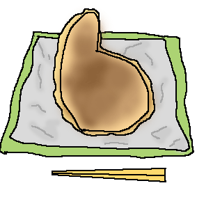 銀紙に包んである二つ折りのお好み焼き。おいしくて好き。友人はお好み焼きというものは二つに折ってあるものだと信じていた。 |