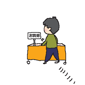 スーパーのお買得ワゴンに目がない石川マン。気がつくとワゴンをあさっている。 |