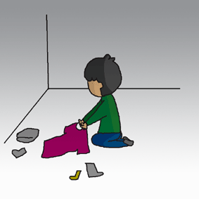 洗濯物をたたむ石川マン。なぜか電気を付けず畳んでいる石川マン。そんな背中がビンボクサイ。 |