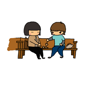 母と私、スーパーにて。お腹がすいてしまったので、たこ焼きを一つ買ってベンチで二人でつつく。 |