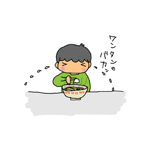 ラーメンの中のワンタンがとても熱くて、真剣にワンタンに怒る石川マン。 |
