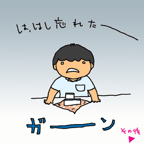 石川マン、弁当のハシを忘れ、途方にくれる… その後は右下をクリック。 |