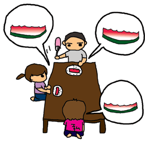 友人夫婦とスイカを食べた。明らかに私のスイカを食べた跡は、白いところがたくさん見えてた…。どこの家庭も白い所ギリギリまで食べると思ってた今日この頃。 |
