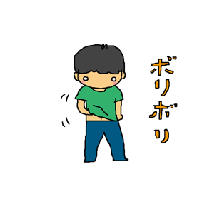 子供の様にヘソを出して無心にお腹をかく石川マン。33歳。 |