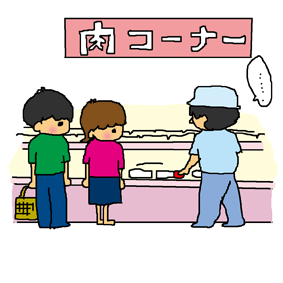 スーパーにて。 狙ってる肉に割引シールが貼られるのを、じっと待つ。 |