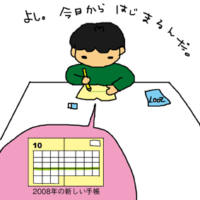 来年のスケジュール帳に無理矢理線を引いて、すごい半端な日にちから(10月下旬)使い始める石川マン…。