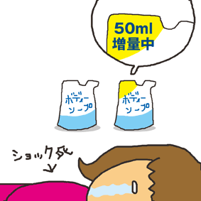 2年ぶりの更新! ドラッグストアで買ったボディーソープ。何も気にせずに2つ買ったら、同じ物で同じ値段なのに1つは増量中だった。。。よく見てもう1つも増量中を買えば良かった。くやしい。 |